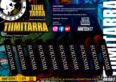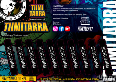 Tarra on kestävää polymeeriseosta, joka laminoidaan lopuksi. Näin tarralle saadaan laadukas ja kestävä pinta.